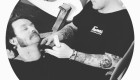 @tyler_hingbones master #liplobster #shaper working on ol' #mulletchops @zachariah_j #countrymusic by #charliepride @captainsipsops @thomassurfboards #captainsipsops #thomassurfboards #mustache #moustache #mensgrooming #countrymusiclegends #barbershop #aussiebarbers #barbersconnect